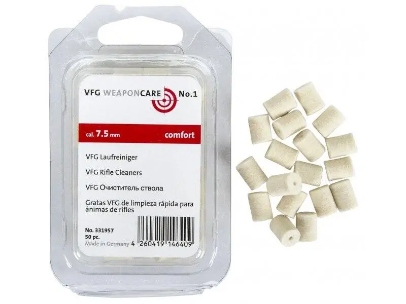 Filtproppar för rengöring av ditt gevärslopp i flera kalibrar.
