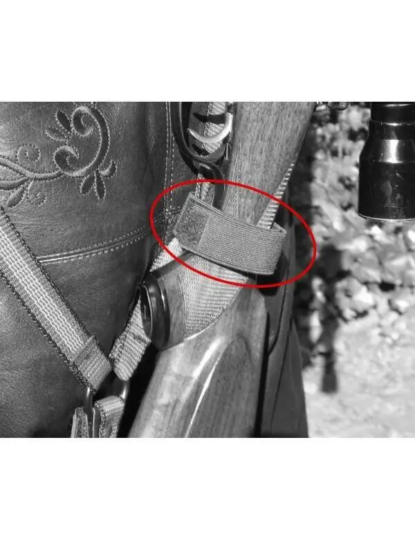 Ska du gå längre med ditt vapen kan en vanlig axelrem fortfarande kännas tung. Med den här "ryggsäck"-remmen kan du bära ditt vapen mitt på ryggen och på så sätt fördela vikten på ett bekvämare sätt.